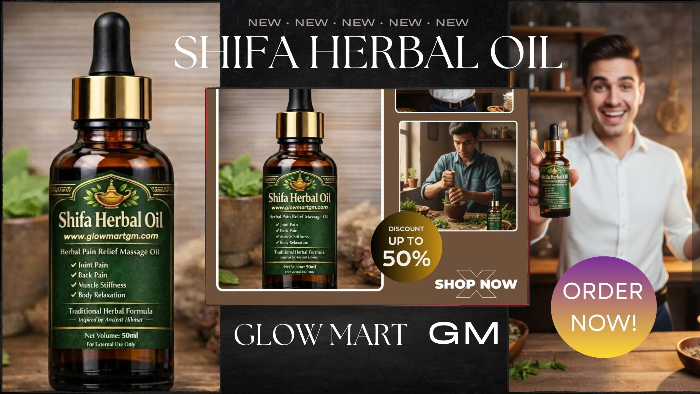 Shifa Herbal Oil – Natural Pain Relief Massage Oil for Joint, Back & Muscle Pain (50ml)